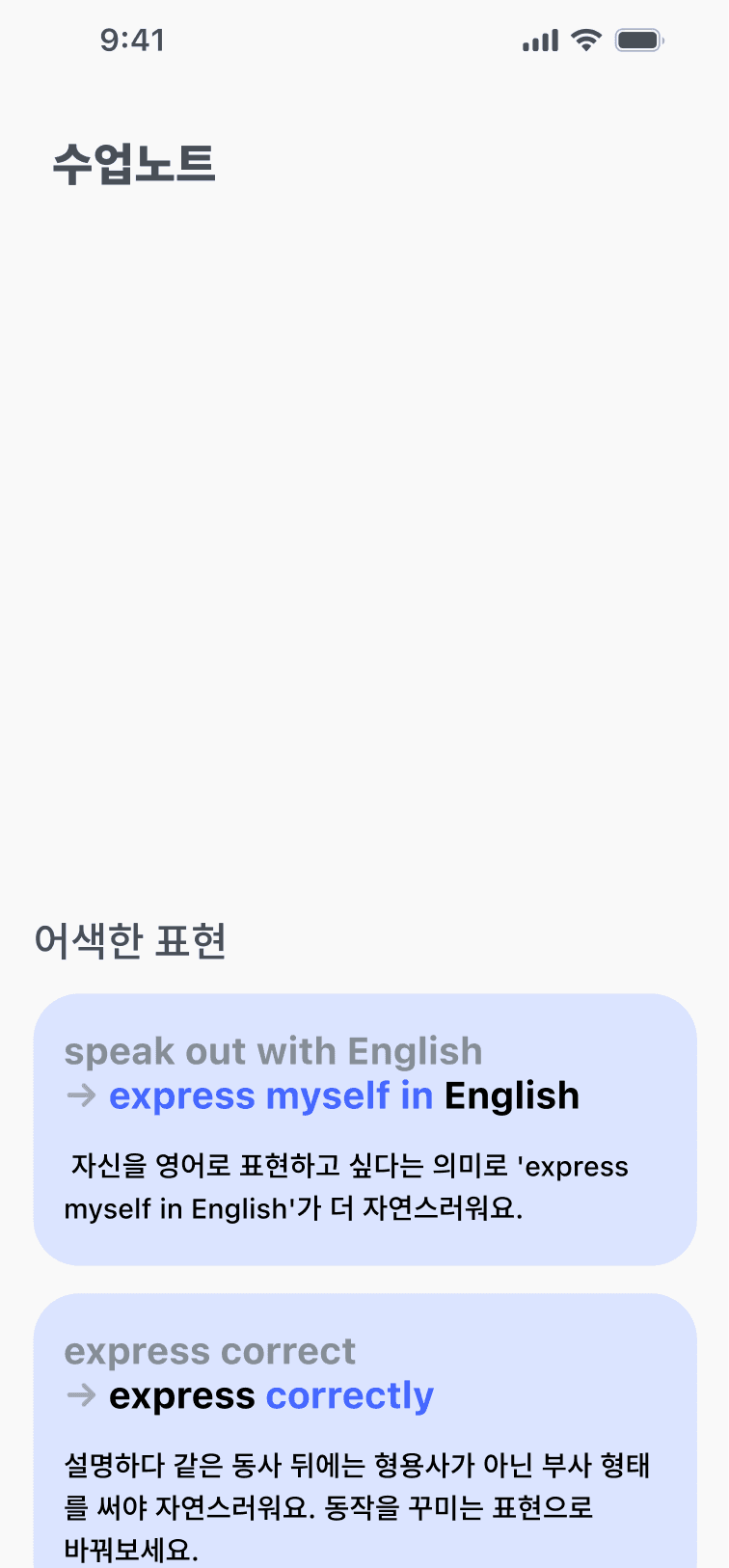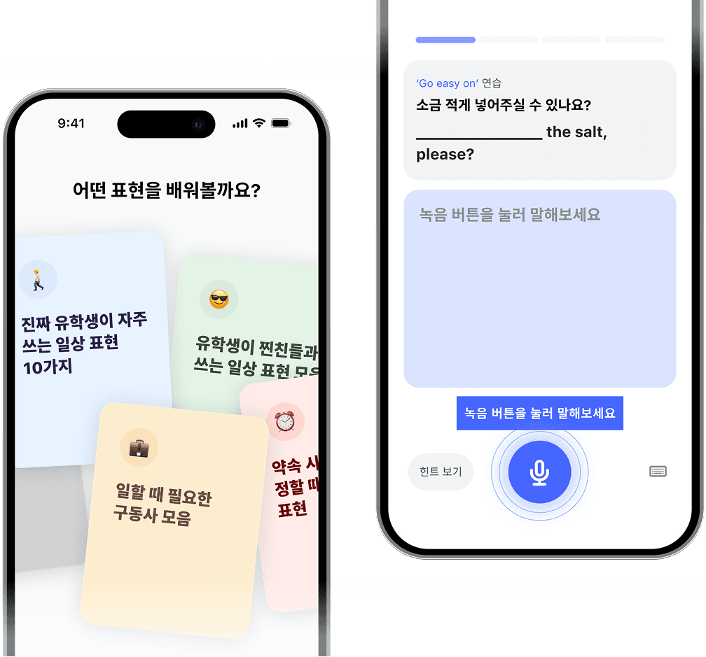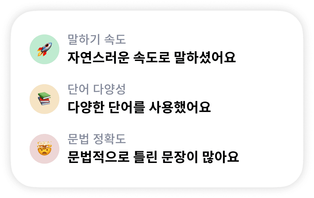 어색한 표현, 문법, 말하기 속도를 바로바로 교정할 수 있어요